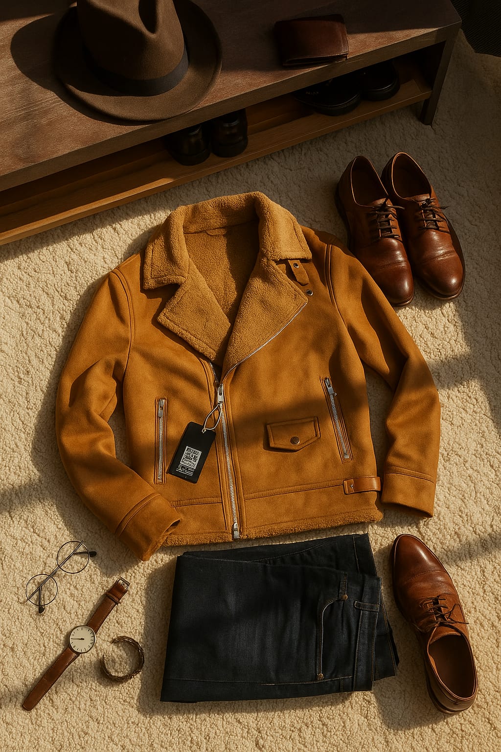 Vendor:TryHarCheezRegular price Rs.7,499.00 PKRRegular priceRs.10,999.00 PKRSale price Rs.7,499.00 PKRMen’s Brown Faux Shearling Aviator Jacket – Winter Warm Biker Style